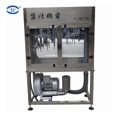 答:1、針對貼標前的干燥要求進行設(shè)計,采用專利設(shè)計風刀,把高速風引致玻璃瓶表面,快速切除水份,以更低功率(高壓鼓風機配合風刀—···